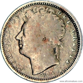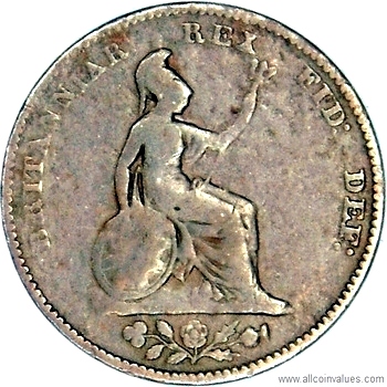 Values, images, and specifications for the 1828 1/2 farthing from the UK.