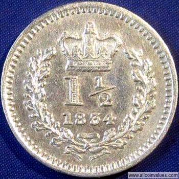Values, images, and specifications for the 1834 3 halfpence from the UK.