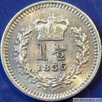 What is a 1835 British three halfpence coin worth?