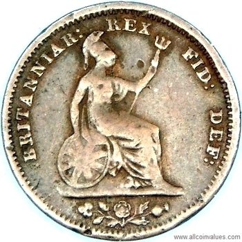Values, images, and specifications for the 1837 1/2 farthing from the UK.