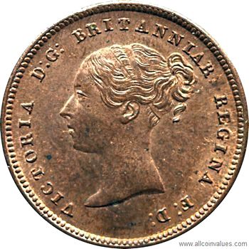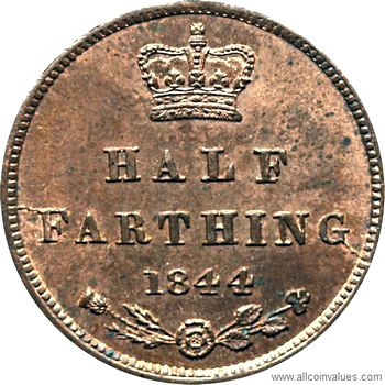 Values, images, and specifications for the 1844 1/2 farthing from the UK.