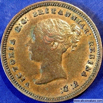 Values, images, and specifications for the 1851 1/2 farthing from the UK.