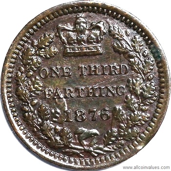Values, images, and specifications for the 1876 1/3 farthing from the UK.