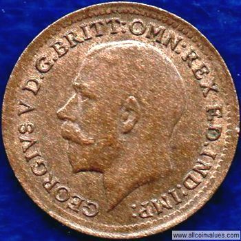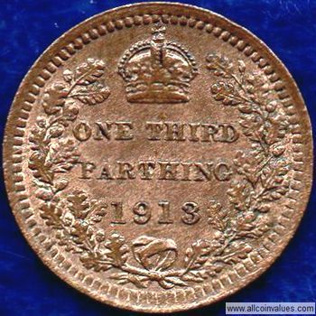 Values, images, and specifications for the 1913 1/3 farthing from the UK.